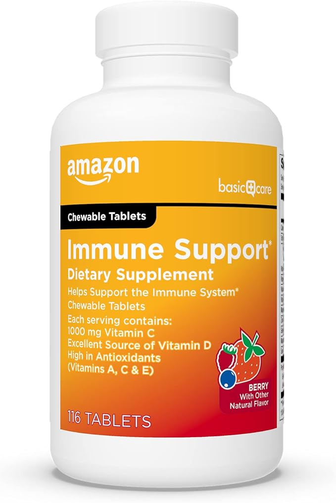 - VITAMIN D: Amazon Basic Care Chewable Immune Support Tablets are an excellent source of the body-essential sunshine vitamin, Vitamin D