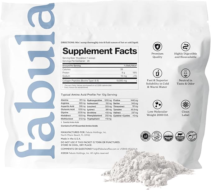 - At Fabula, we're committed to delivering not just taste, but also health and purity. Our Collagen Peptides Powder is free from gluten and dairy, and GMOs.
