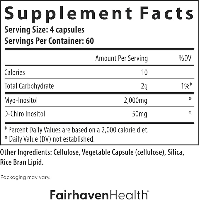 Fairhaven Health Myo-Inositol and D-Chiro Inositol Supplement for Women | 40:1 Ratio | Female Fertility Supplement for Women and Hormone Balance* | Vegan | 240 Myo & D-Chiro Inositol Capsules