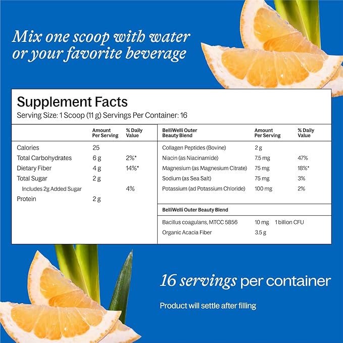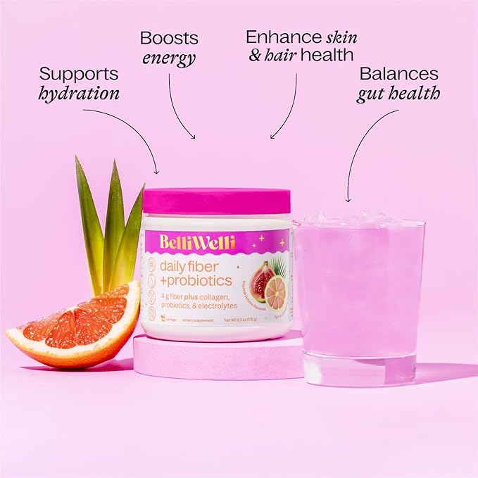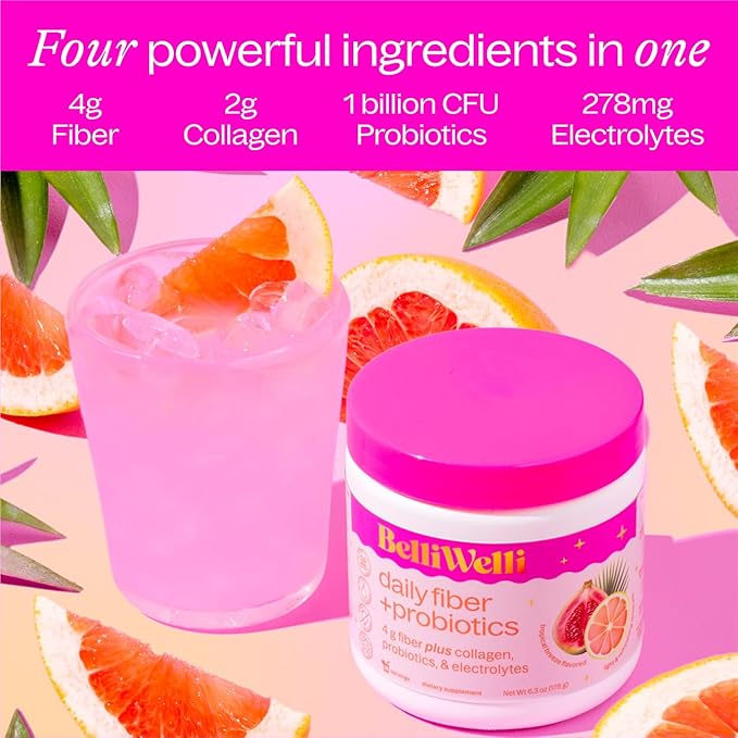 BelliWelli Fiber Supplement for Women & Men – Premium Daily Fiber Powder from Organic Acacia with Added Collagen, Electrolytes & Probiotics – No Bloat, Constipation & Gut Health Support (Tropical)