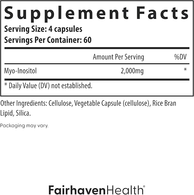 Fairhaven Health Myo-Inositol Supplement for Women and Men | Vitamin B8 2000mg | Vegan Inositol Powder Capsules | Gluten, Dairy and Soy Free | 240 Myo Inositol Capsules