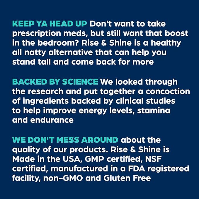 - KEEP YA HEAD UP: Rise & Shine is an all-natural supplement that improves testosterone and strength, and can help you stand tall and come back for more.