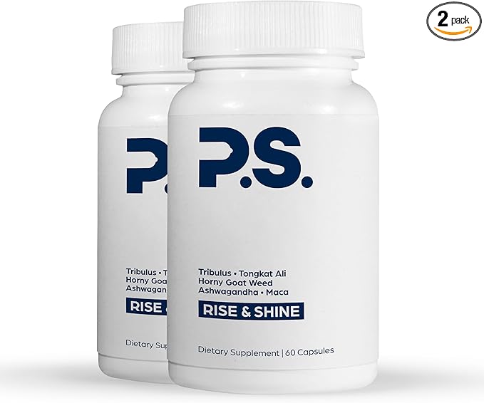 PS Rise & Shine Premium Horny Goat Weed Supplement with Tribulus, Fenugreek, Maca, Ashwagandha, and Tongkat Ali - Supports Energy and Boosts Testosterone (120 Capsules)