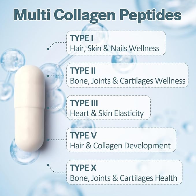 - HIGH ABSORPTION & HIGH QUALITY: Premium collagen peptides, easy to absorb. Selected ingredients, multi collagen protein, North Atlantic wild deep-sea fish, grass-fed cattle, pasture-raised chicken & eggs. Natural & safe, no artificial additives, no gelatin, gluten-free, pesticide-free, non-GMO, GMP compliant, reliable & safe. Multi collagen peptides powder inside the collagen capsules, high absorption.