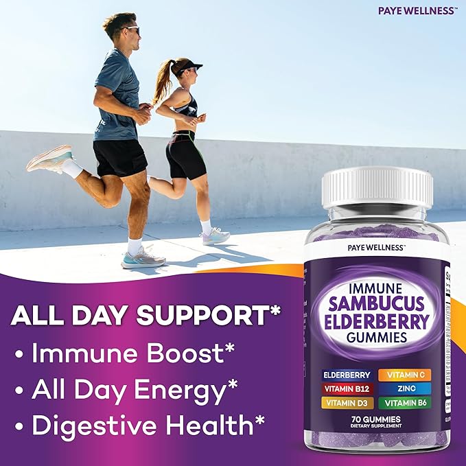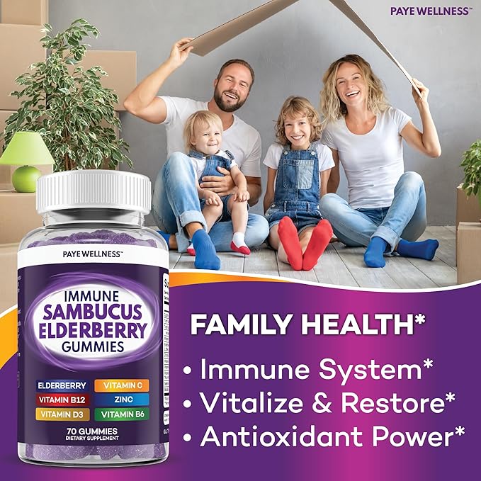 - 140 GUMMIES | 2 MONTH SUPPLY Sambucus ElderberryImmune-Boosting Elderberry Formula Enhanced with Essential Nutrients: Our Elderberry with Vitamin C, Vitamin B6, Vitamin B12, Vitamin D3, Zinc, Selenium, and Probiotics gummies offer a potent blend to support your immune system, harnessing the power of elderberry antioxidants and essential vitamins. Great for all around energy levels and to maximize immune health defense.