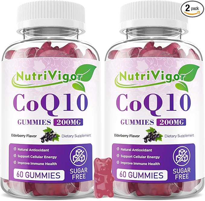 CoQ10 Gummies, Coenzyme Q10 Supplement 200mg, High Absorption CoQ10 Supplement for Cellular Energy and Immune Health, Vegan, Gluten Free, Elderberry Flavor, 120 Count