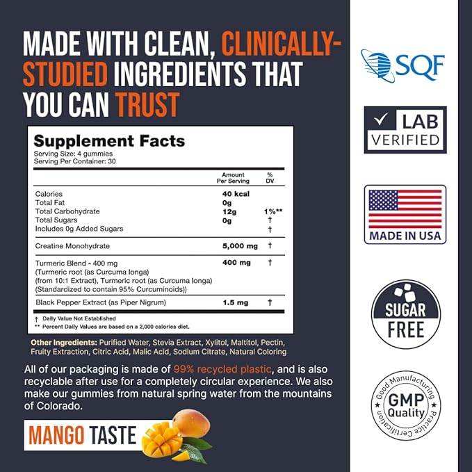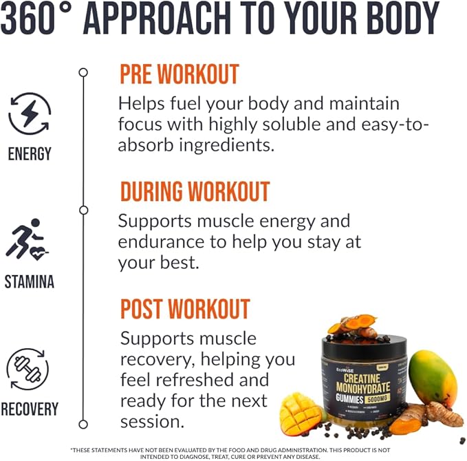 - 5000 MG CREATINE PER SERVING – Delivers 5000 mg of creatine monohydrate in convenient chewable gummies with no powder mixing required.