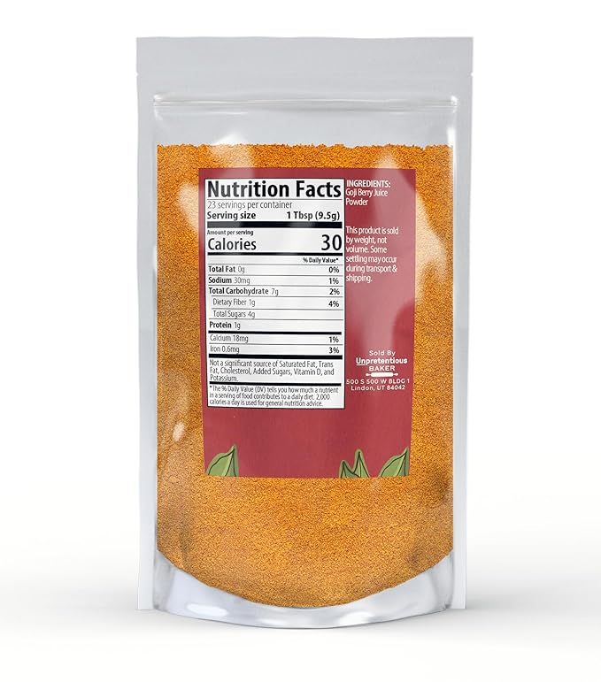 Unpretentious Goji Berry Powder, Drink & Smoothie Mix-in, Sweet & Tart, Fruity Ingredient (8 Ounce)