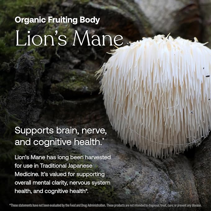 - KEY INGREDIENTS - L-ergothioneine for longevity and brain health. CoQ10 for antioxidant support. 150% DV vegan Vitamin D3 for bone & immune health. Coenzyme B Vitamins for energy. Fruiting body organic lion’s mane with bacopa for memory support.