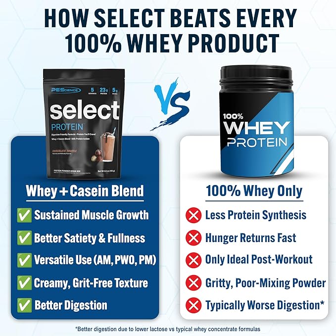 PEScience Select Protein Powder, Whey and Casein Blend, Clean Protein Powder for Women and Men, Low Calorie, Low Carb, Keto Friendly, Gluten Free - Chocolate Truffle - 5 Servings