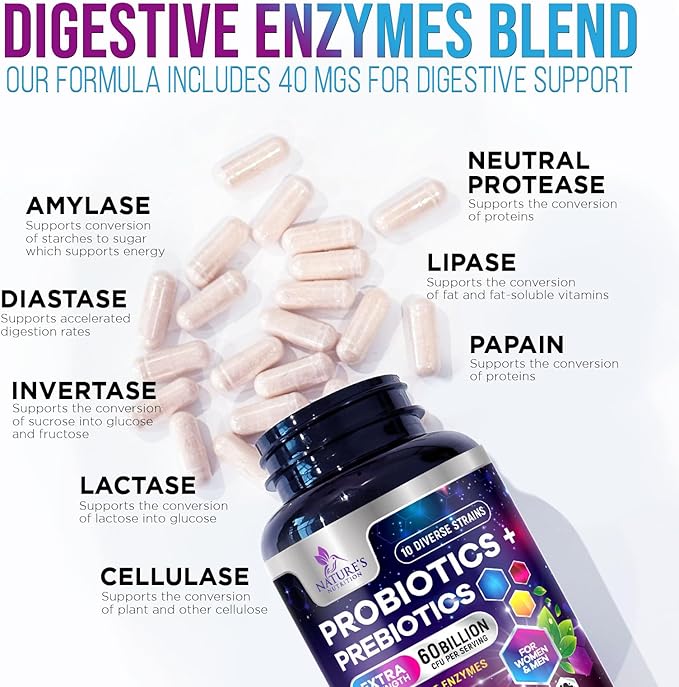 - Advanced Digestive Support with 60 Billion CFU: Probiotics for women and men delivering 60 billion CFU from 10 diverse strains, including Lactobacillus, to support gut flora and overall digestive health