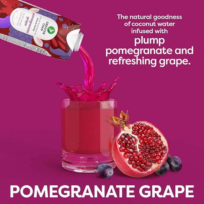 - GRAPE & READY TO GO: Whether you're heading to practice, packing lunches, or racing through your to-do list, GREATER THAN travels with you. The bold, juicy grape flavor is a classic that delivers feel-good refreshment on demand—made with real fruit juice and coconut water can help keep you hydrated and energized anytime, anywhere.