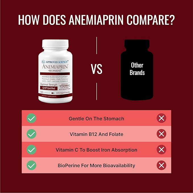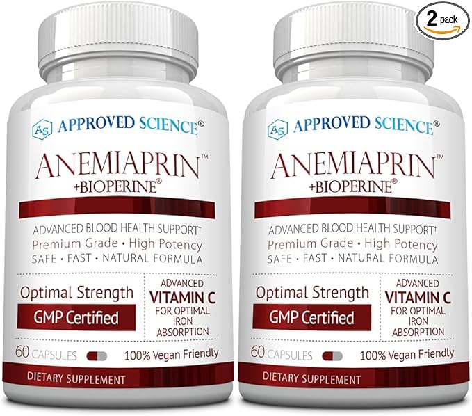 Approved Science Anemiaprin - Absorbable Iron, Vitamin C - Gentle On Stomach - 120 Capsules - 2 Month Supply - Non-GMO, Vegan