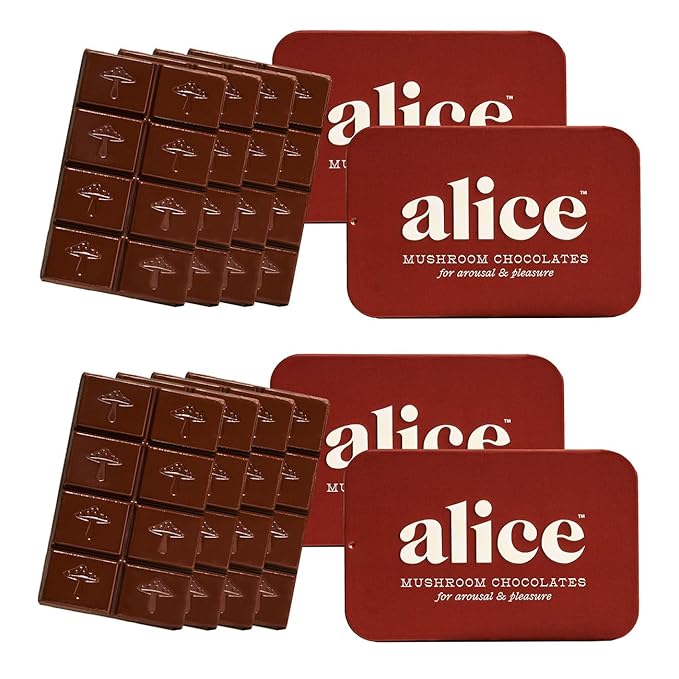 Alice Mushrooms Happy Ending 4-Pack | Sensual Mushroom Chocolates | Improves Mood, Performance, Vitality, Energy and Engagement | Cordyceps, Ashwaganda, Cayenne, Cinnamon