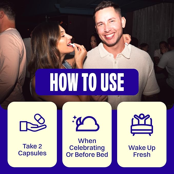 - CONVENIENT JAR SO YOU DON’T FORGET - 15 servings, with 30 large capsules (good for 15 nights out). Take them with water to help you feel fresh. Easy to put in your pocket, purse or bag and share with friends and family. Take 2-4 capsules per night.