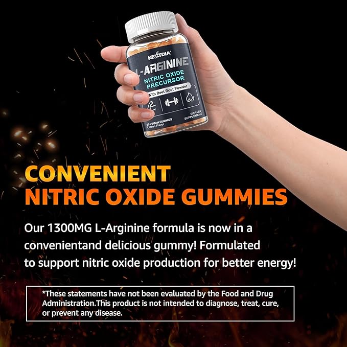 Sugar Free L Arginine Nitric Oxide Gummies 1300mg for Men & Women with L Citrulline, Beet Root, B3 | L Arginine L Citrulline Supplements | Vegan, 60 Counts