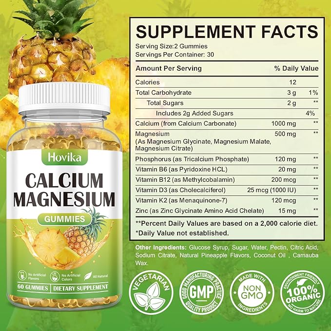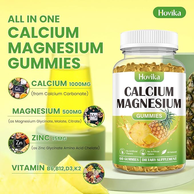 - Premium Ingredients - Hovika Calcium Magnesium Zinc Gummies are manufactured in accordance with highest standards. The calcium magnesium zinc d3 supplement is soy free, non-GMO, gluten-free and vegan-friendly. If you are not satisfied with our products for any reason, please feel free to contact us.*