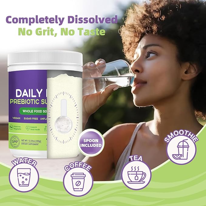 - COMPLETELY SOLUBLE (NO GRIT): Our high fiber supplements are easy to dissolve, without grit, chunky and grainy. Unflavored powder - mixing with 8 ounces of your favorite beverage without altering the taste or texture of foods, easily get all the benefits