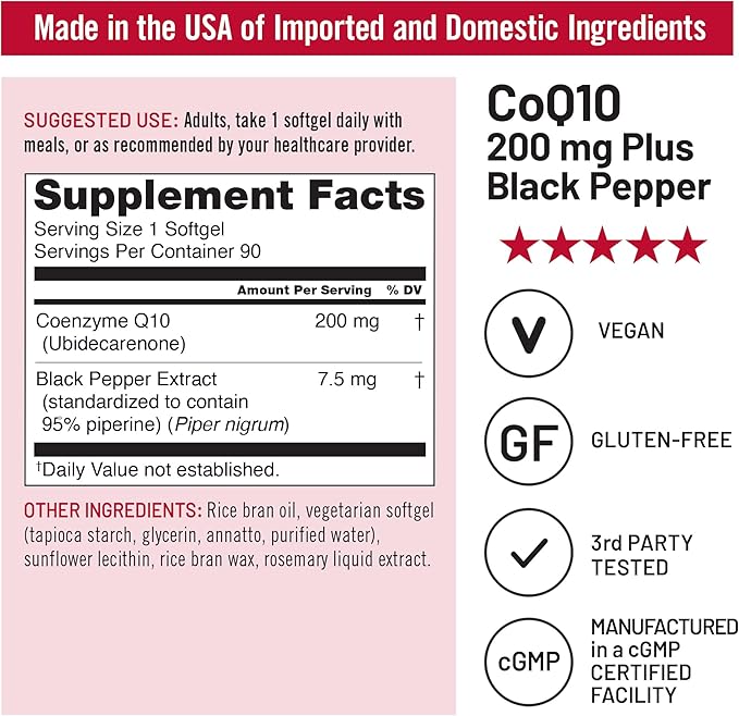 - 3rd PARTY TESTED, USA MANUFACTURED: NatureWise CoQ10 + Black Pepper softgels are 3rd party tested for purity and efficacy and manufactured in the USA with clean, high-quality ingredients in a cGMP-certified facility.