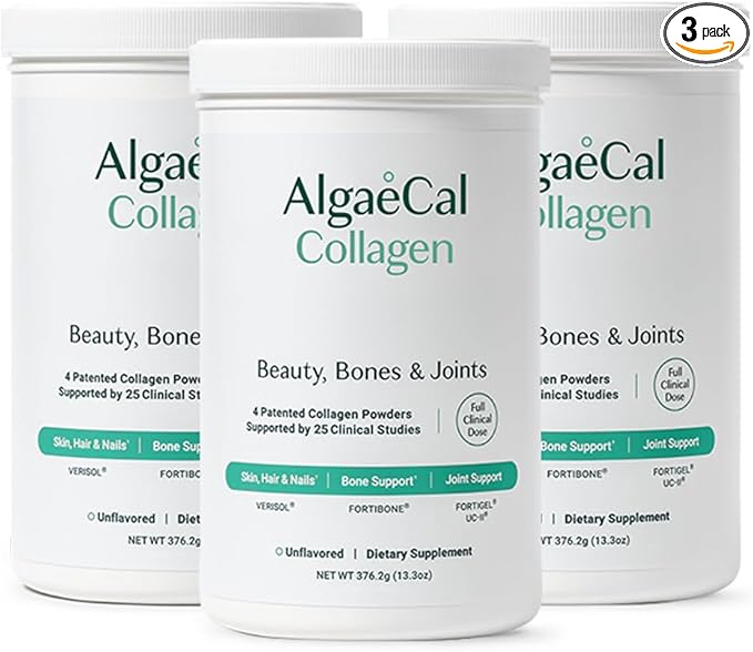 ALGAECAL Collagen - 4 Clinically-Supported Peptides VERISOL®, FORTIGEL®, UC-II®, FORTIBONE®, Anti-Aging Hydrolyzed Collagen Powder, 3 Packs, Made in USA