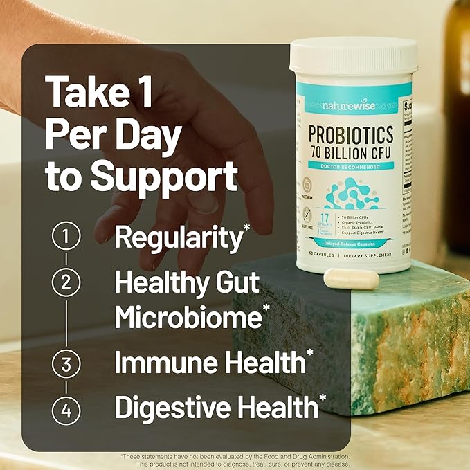 NatureWise Probiotics 70 Billion CFU - 17 Strains + Organic Prebiotics - Immune, Digestive & Gut Health Support for Women & Men - Vegetarian, Gluten-Free, Non-GMO - 30 Capsules[1-Month Supply]