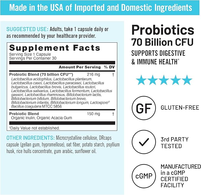 - POWERFUL GUT SUPPORT: Our high-potency probiotic offers 70 billion colony-forming units (CFUs) of 17 unique strains to support your daily digestion, gut health and immune health.*