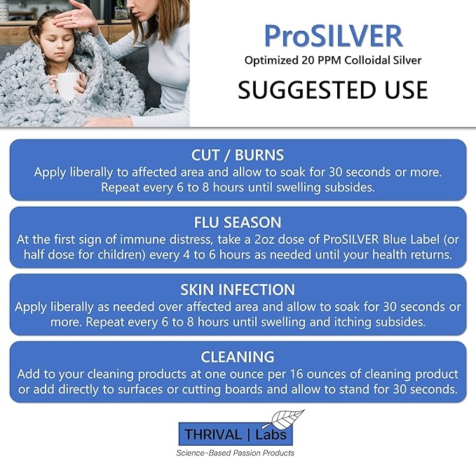 - OPTIMIZES YOUR IMMUNE SYSTEM: For over 2000 years, the silver solution has been extensively used as a therapeutic agent to keep sicknesses at bay and almost exclusively in burn centers today. ProSILVER is enhanced by modern technology, giving you an extra immune boost as you tackle your day-to-day tasks. Use proactively during flu and cold season before entering crowds such as work, school, or events.