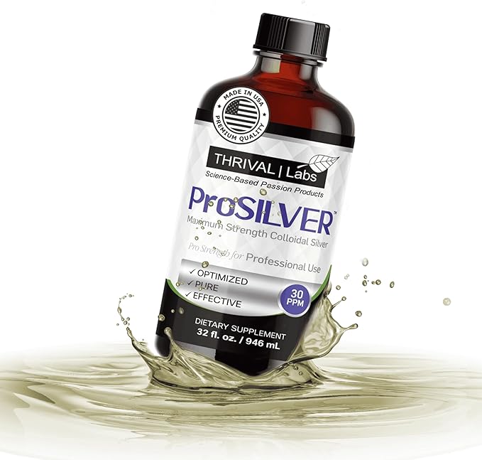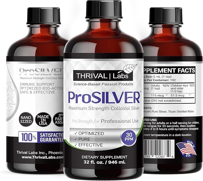ProSILVER Black Label Pro-Strength Colloidal Silver for Immune Support, 30 PPM Maximum Strength for Professional Use, Dark Glass Bottle - Thrival Labs (32oz)