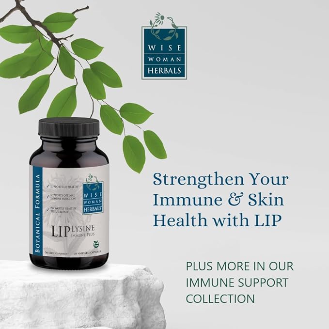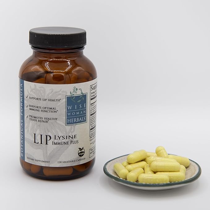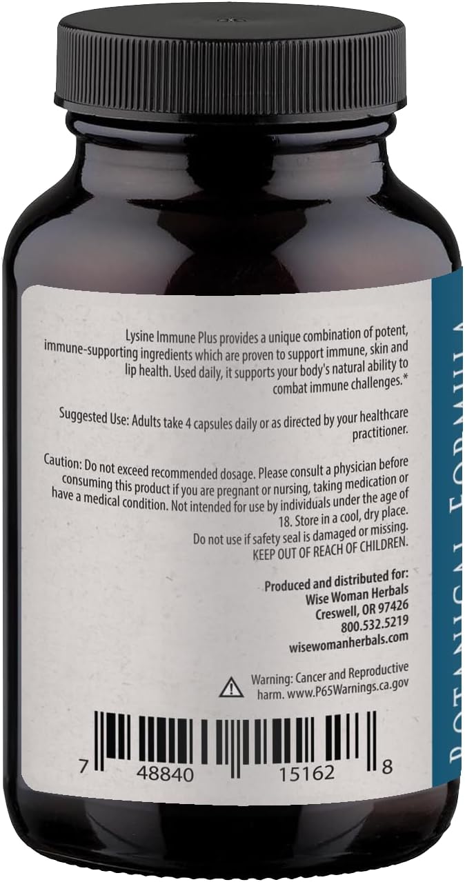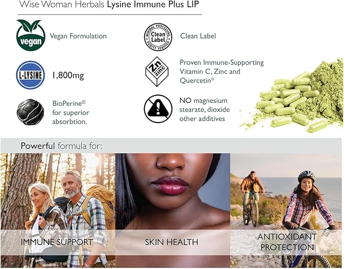Wise Woman Herbals Lysine Immune Plus Lip, Additive-Free Non-GMO Formula, High-Potency L-Lysine & Immunity Blend, Lip & Skin Health Support, Natural Immune Defense, 120 Veg Caps