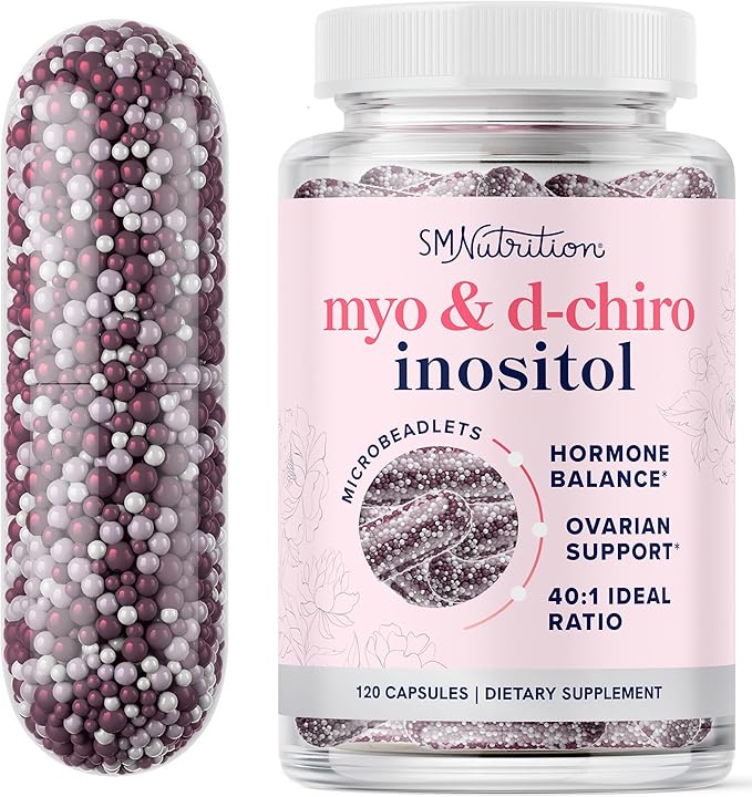 Myo-Inositol & D-Chiro Inositol for Hormone Balance for Women | Microbeadlets to Regulate Menstrual Cycle & Support Ovarian Health | 40:1 Ratio Myo & D Chiro | Non-GMO | 120 Ct (2 Month Supply)