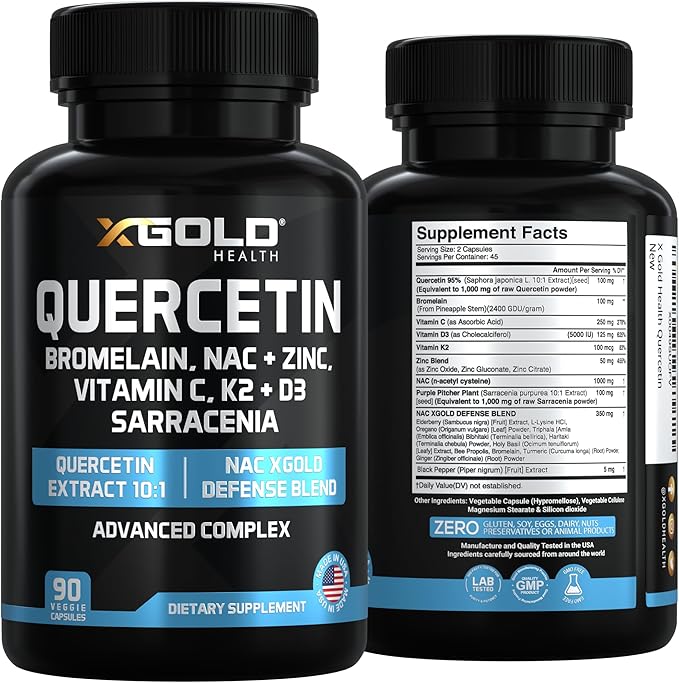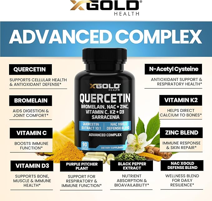 - Potent Quercetin Extract 10:1: Delivers the strength of 1,000 mg of raw quercetin powder, 10 times more concentrated for enhanced immune and antioxidant support.
