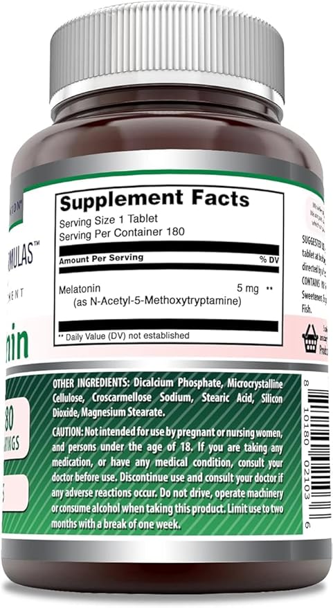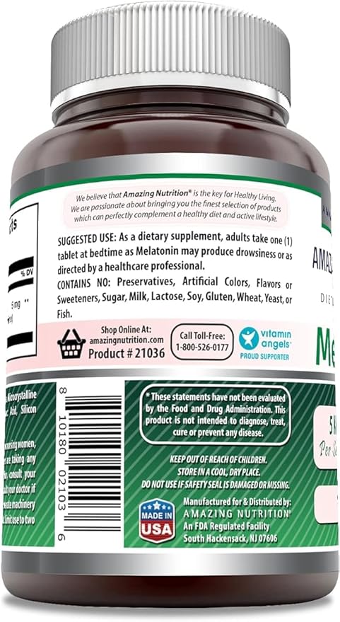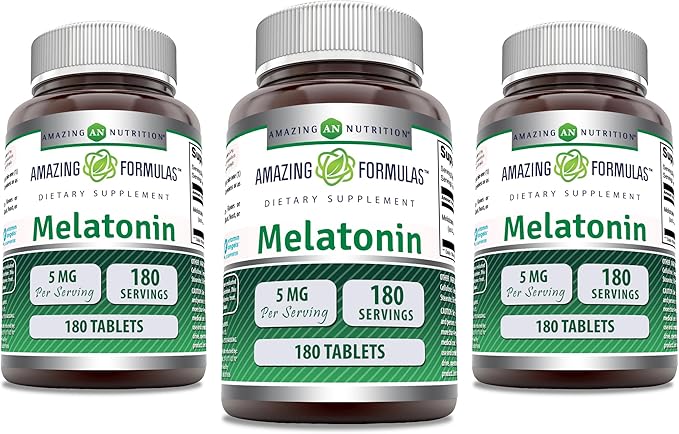 Amazing Formulas Melatonin 5 Mg Tablets Supplement | Non-GMO | Gluten Free | Made in USA (180 Count | 3 Pack)