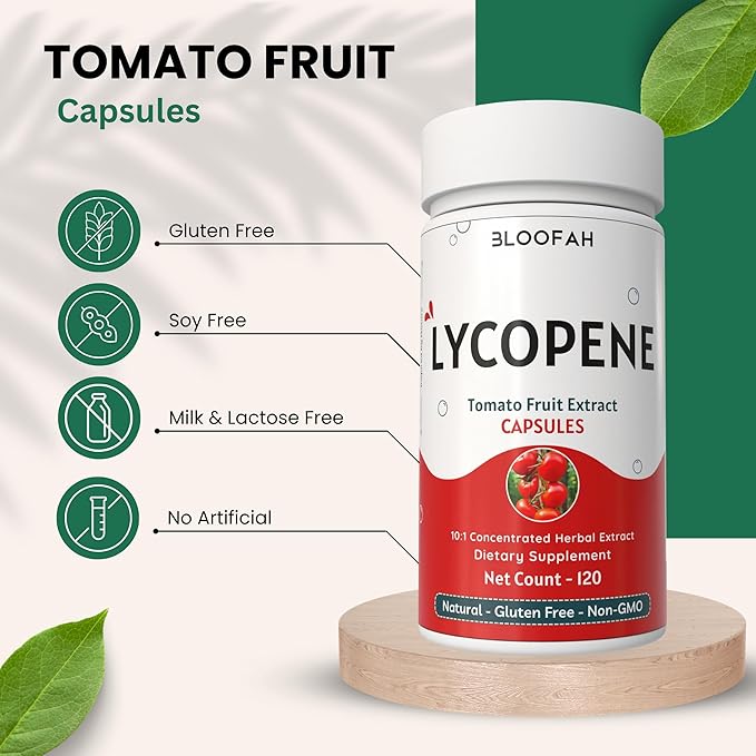 500mg Lycopene Supplement Tomato Extract 10:1 Capsules - 120 Count | 100% Pure, Non-GMO & Gluten Free Formula | Natural Carotenoid Supplement for Health and Wellness Support