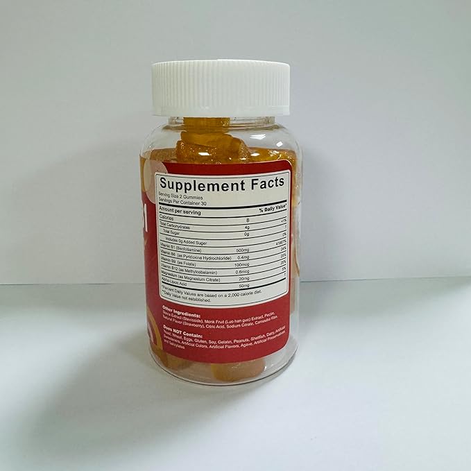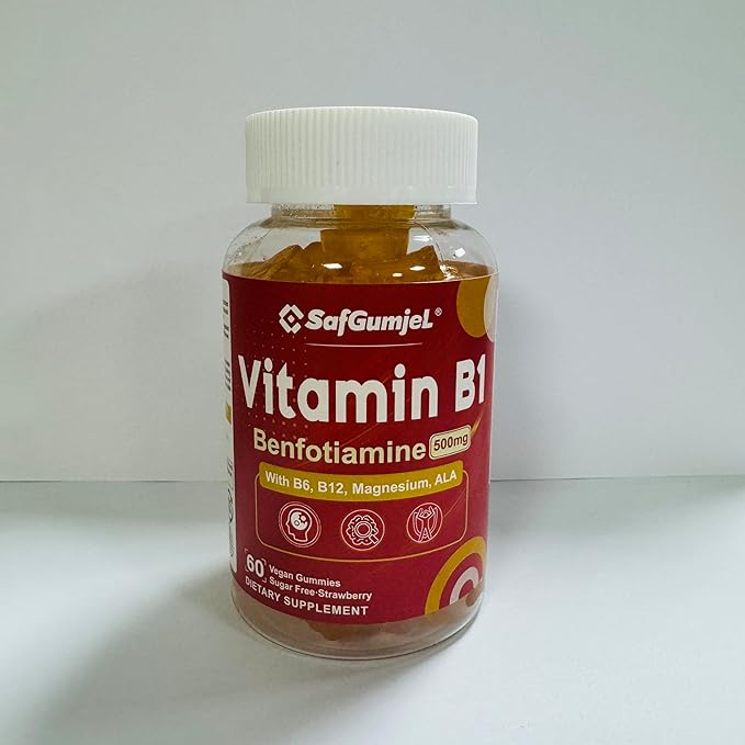 Vitamin B1 Gummies - Benfotiamine 500mg, Vitamin B1 B6 B12 Complex, Sugar Free, Non GMO, Vegan, 60 Counts