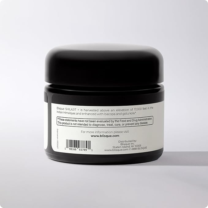 - AUTHENTIC AND NATURAL: Blisque SHILAJIT + uses the finest authentic wild-harvested shilajit resin on the planet. Sourced at over 17,000 feet of elevation in the Indian Himalayas and manufactured in the USA in a state-of-the-art certified cGMP NSF facility. Our pure and potent shilajit resin is China-free, filler-free, additive-free, and free of hidden ingredients. Why? Because your well-being is our priority.