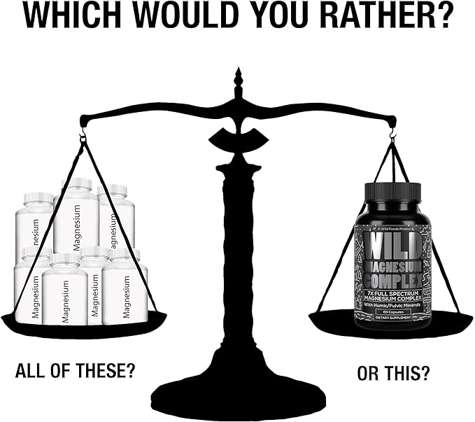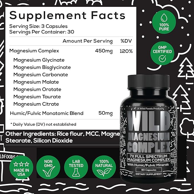 Wild Foods Magnesium Complex Supplement with 7X Forms | High Absorption, Full Spectrum, Easy Digestion | 500mg Glycinate, Bisglycinate, Malate, Orotate, Citrate, Taurate | 90 Capsule (Pack of 3)