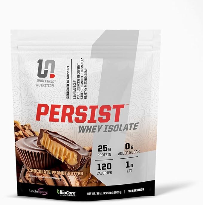 Undefined Nutrition Persist Whey Isolate by Brian Shaw - 24g Protein, 30 Servings – Supports Recovery, Strength & Performance - Gluten Free, Fast Absorbing (2.18lbs, Chocolate Peanut Butter)