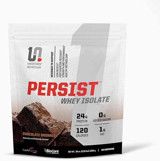 Undefined Nutrition Persist Whey Isolate by Brian Shaw - 24g Protein, 30 Servings – Supports Recovery, Strength & Performance - Gluten Free, Fast Absorbing (2.18lbs, Chocolate Brownie)