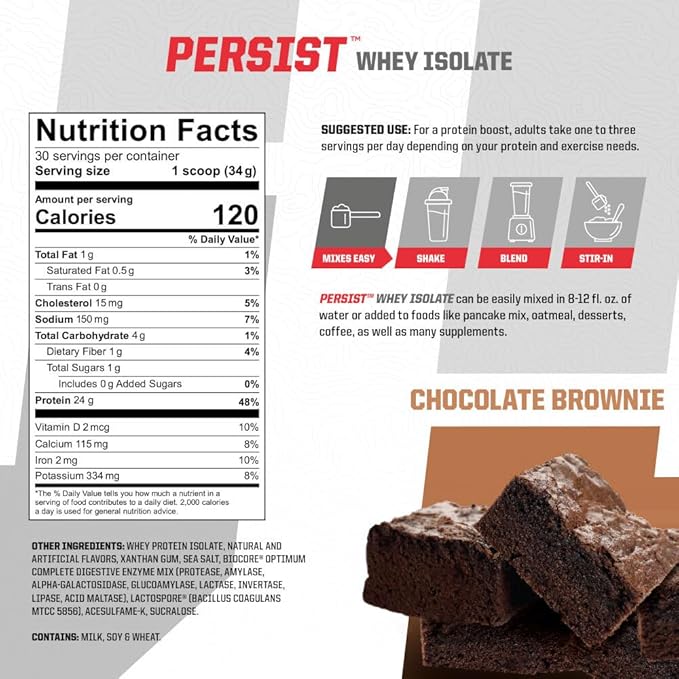 - LEANER MUSCLE, WITHOUT THE CALORIE BLOAT: Each serving of PERSIST provides a solid 24g of protein at just 120 calories per serving with zero added sugar, or fat so you can easily bump up your daily protein intake, without excess calories that can mess up your macros