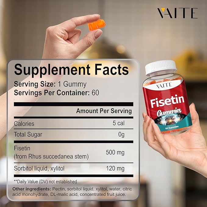 - Fisetin 500mg supplement, designed to support cellular health and combat oxidative stress. Each gummies contains a potent blend of flavonoids and plant extracts, ensuring optimal antioxidant support
