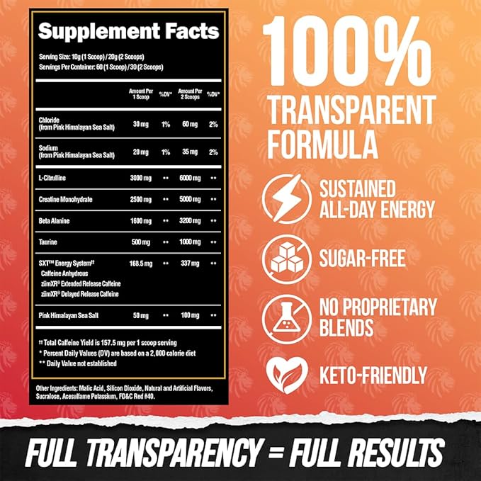 - GREAT TASTING CAFFEINE MATRIX: Our CORE pre-workout powder is powered by our all new SXT Sustained Energy and Focus System. This tri-source caffeine matrix will provide you with more sustained energy and focus vs the standard forms of caffeine used in other pre workout supplements. Our Alpha Punch "Apple Punch flavor" will be like enjoying a delicious, top-shelf cocktail drink from a professional mixologist vs taking nasty shots of clearance bin vodka.