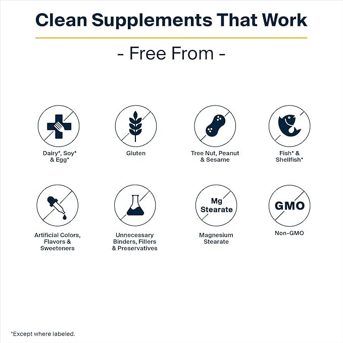 - Clean Vegan Formula: Free from gluten, dairy, peanut, tree nut, fish, shellfish, soy, sesame, and egg. Non-GMO. Made without artificial fillers, coatings, binders, or colors