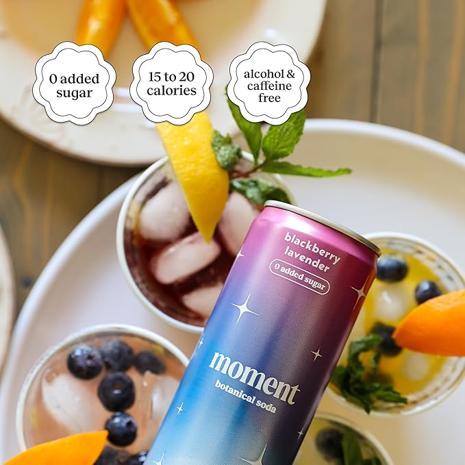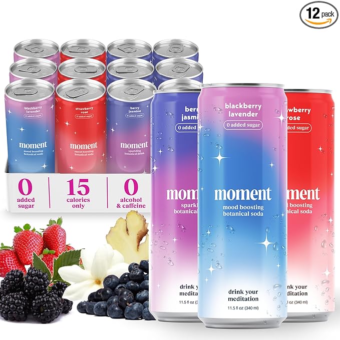 Moment Botanical Soda Soft Drink (Shark Tank) - SPARKLING Drinks | Berry Blast | L-Theanine & Ashwagandha for Calm & Clarity | 0 Added Sugar 0 Caffeine | 12-pack
