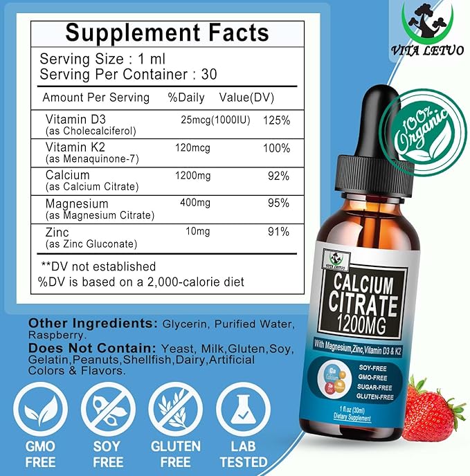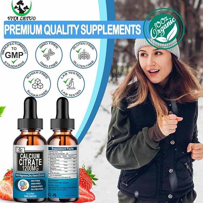 - Calcium Supplement Liquid Drops: Liquid Calcium Drops is a calcium supplement, providing calcium 1200 mg with vitamin d3 and high levels of magnesium citrate per serving to help support bone health,teeth & muscle health and cardiovascular health* Vita letuo provide a simple and effective way to incorporate this Liquid Calcium Supplement into your daily routine.With 1 dropper of calcium drops, get calcium your body needs.