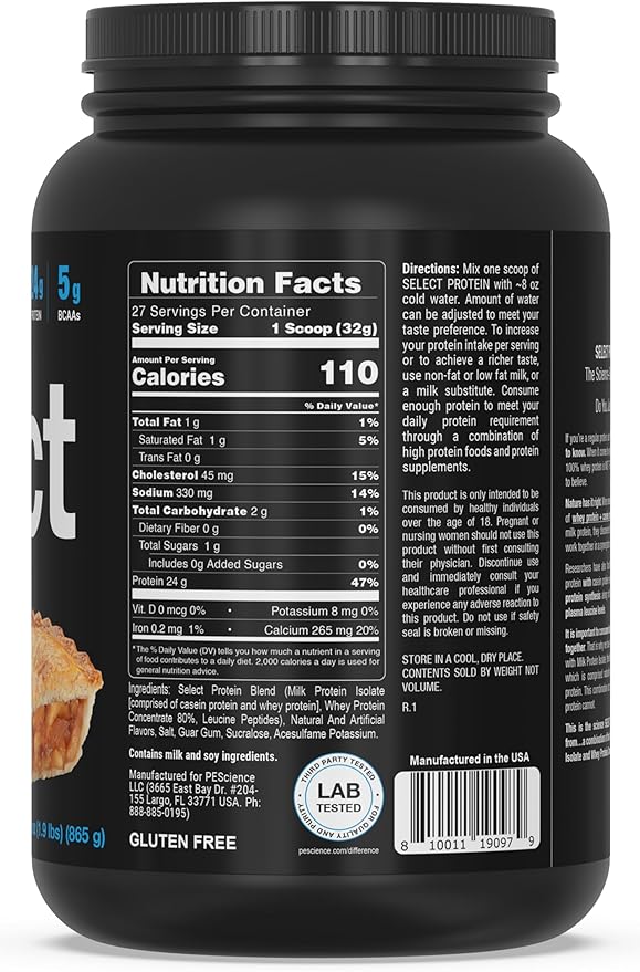 PEScience Select Protein Powder, Whey and Casein Blend, Clean Protein Powder for Women and Men, Low Calorie, Low Carb, Gluten Free - Limited Edition Apple Pie - 27 Servings
