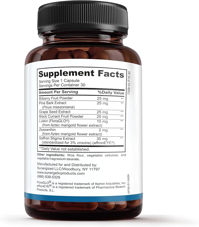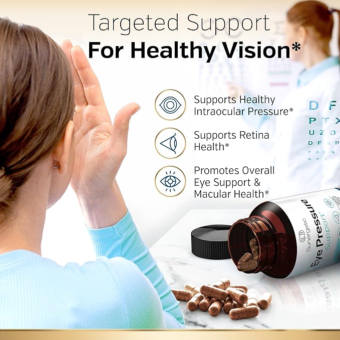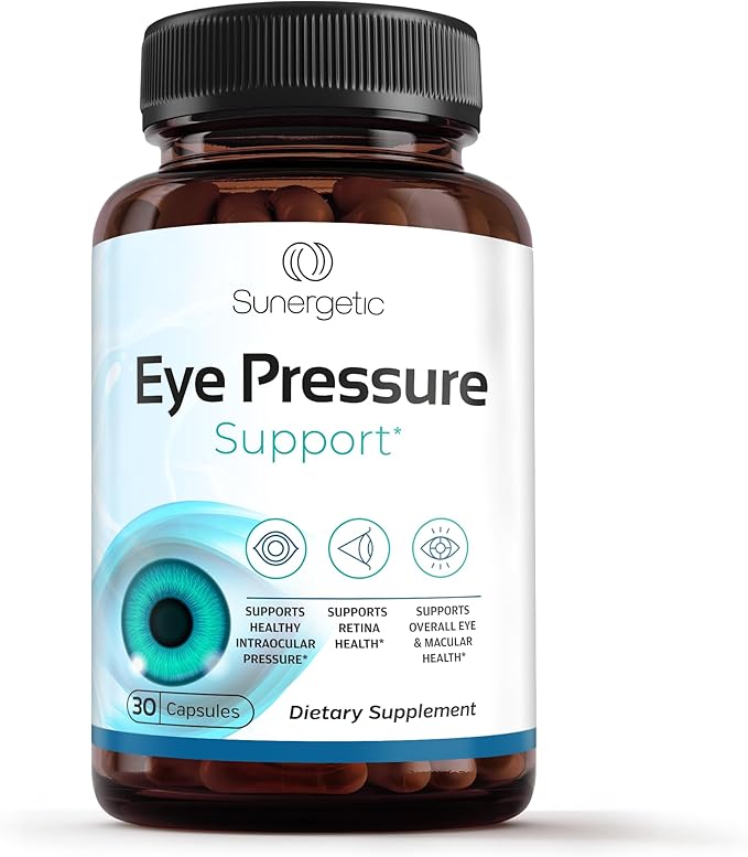 Sunergetic Premium Eye Pressure Support Supplement - Eye Pressure Supplement with Saffron, Lutein, Zeaxanthin, Bilberry & Pine Bark - Supports Ocular Health & Overall Vision - 30 Count