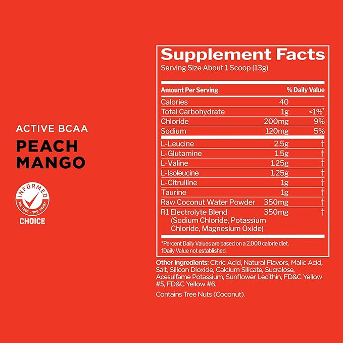 - Hydration Support: With 350mg coconut water powder + 350mg electrolyte blend per serving, Active BCAA's is designed to support better hydration and help replenish essential minerals lost through sweat.