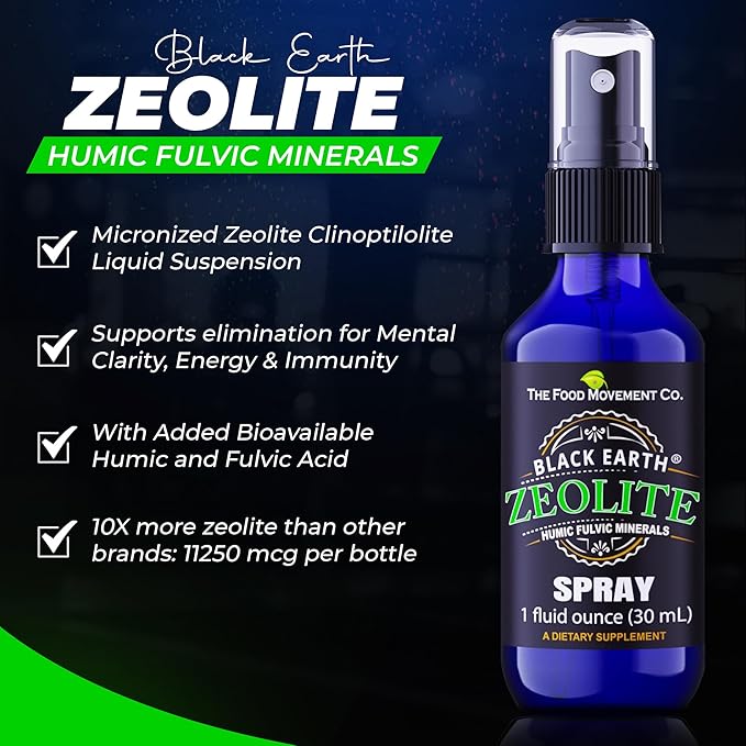 Black Earth Zeolite with Humic Fulvic Acids, Trace Minerals, for Adults and Kids Supports Gut Health, Immune Support, Digestion and Elimination and More 1oz Liquid Pump Spray Supplement
