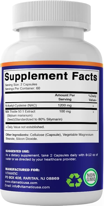 - POTENT ANTIOXIDANT SUPPORT: Vitamatic NAC supplement combines 1200mg of N-Acetyl-L-Cysteine (NAC) and Milk Thistle 50:1 Extract for powerful antioxidant protection against free radicals*.