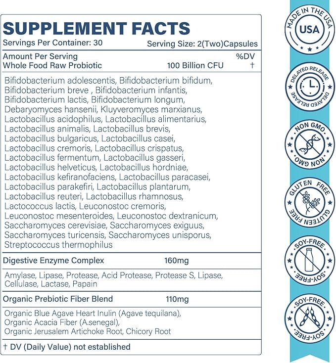 - ๐ฆ๐ฒ๐น๐ฒ๐ฐ๐๐ฒ๐ฑ ๐ฃ๐ฟ๐ผ๐ฏ๐ถ๐ผ๐๐ถ๐ฐ๐: Our daily probiotics feature a potent blend of 100 billion CFUs from 35 strains, including Lactobacillus curvatus, Lactobacillus reuteri, and Lactobacillus rhamnosus. They help balance gut microbiota while easing occasional digestive discomforts such as bloating, diarrhea, and constipation, supporting optimal gut health